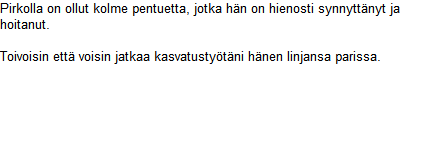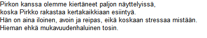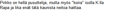 Pirkko antaa pusuja Toskalle